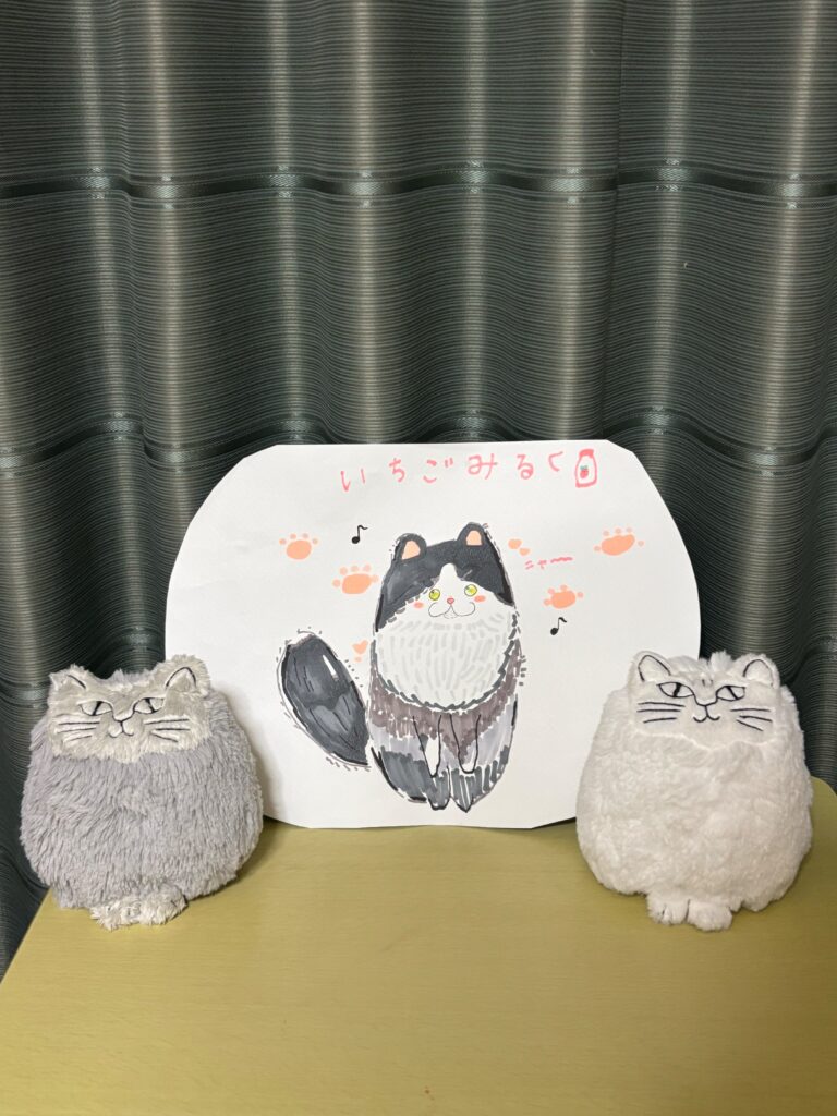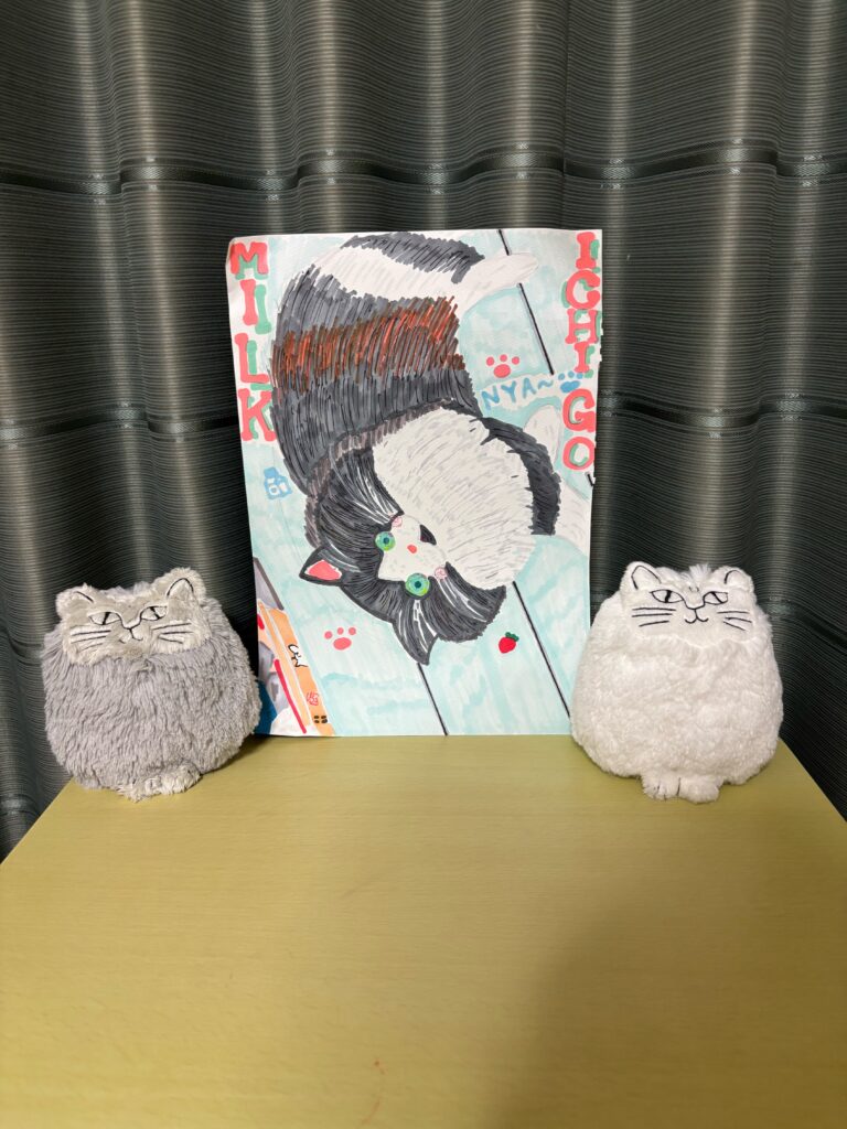 お姉ちゃん。お風呂のふたの上にいるみるくを上手に描いてくれました。